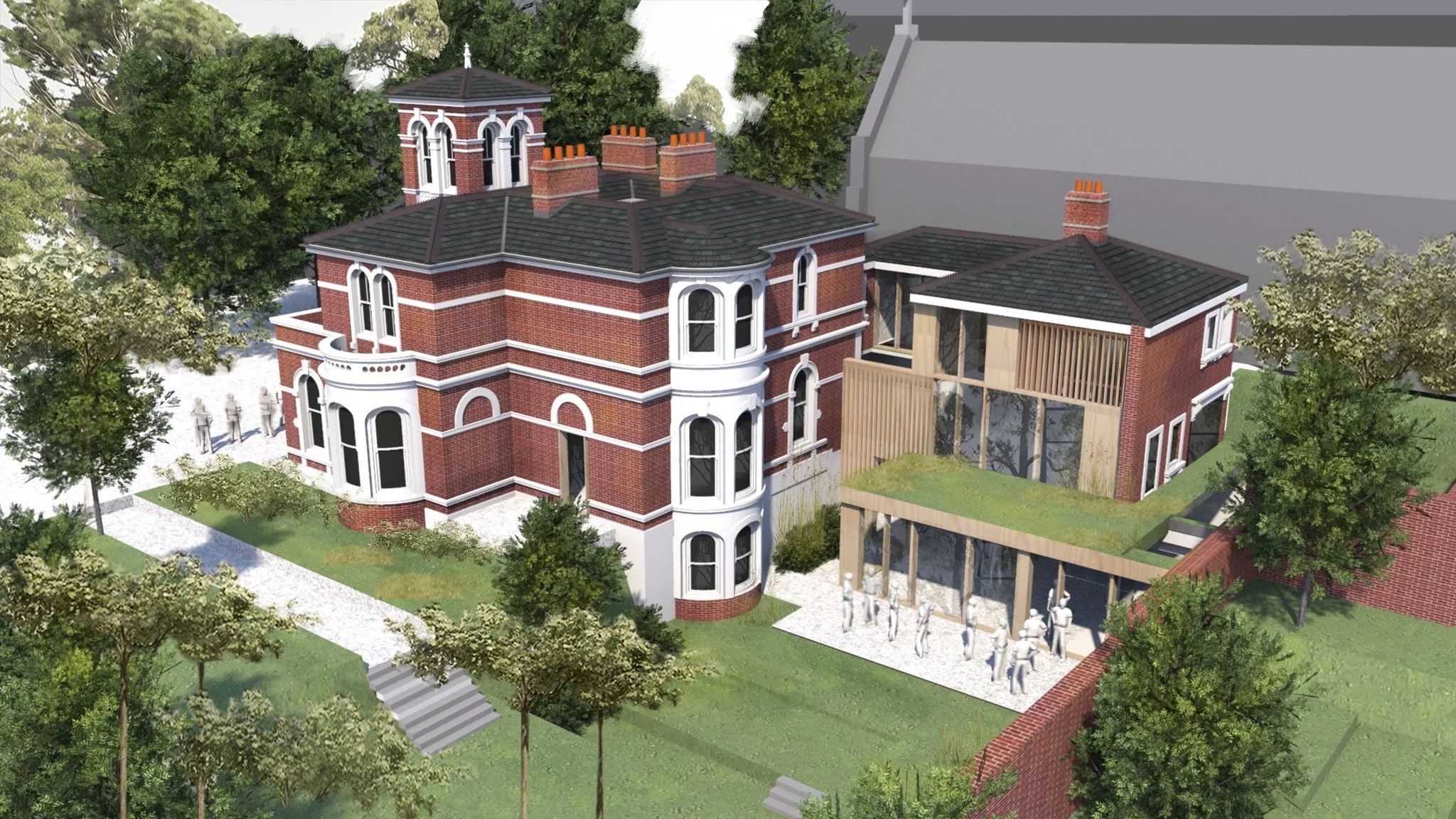 first appears in Belfast’s records in 1877, named Eirene. It is a two-storey red brick Italianate mansion, in an asymmetrical style with a three storey tower. The building is believed to have been designed by architect John Lanyon, the son of one of Belfast’s most eminent architects Charles Lanyon. John Lanyon lived next door at 71 Somerton Road, and Eirene is similar in style to other buildings he designed such as Connolly Street Station in Dublin, and the Waterside Railway station in Derry/Londonderry. In the 1860s, Lanyon formed an architectural practice with his father and another prominent architect W.H Lynn, and Belfast Castle on the Antrim Road was one of their most well-known designs.